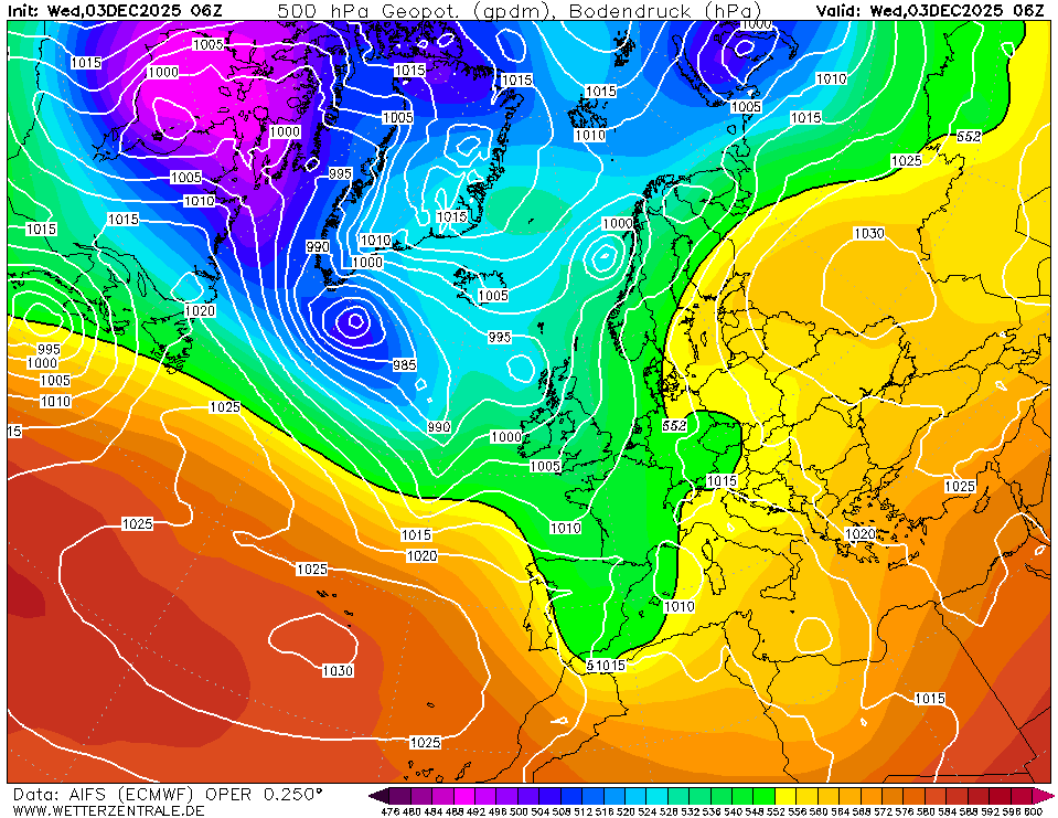 Das ECMWF betreibt das Artificial Intelligence/Integrated Forecasting System (AIFS). Die Ausgabe dieses experimentellen AIFS-Modells wird mit Zeitschritten von 6 Stunden bis zu 15 Tagen prognostiziert, die auf der analyse des ECMWF basieren. Prognosen werden viermal täglich erstellt (00,06,12,18 UTC). Die Daten werden 1 Stunde nach der Echtzeit veröffentlicht. Weitere Informationen finden Sie