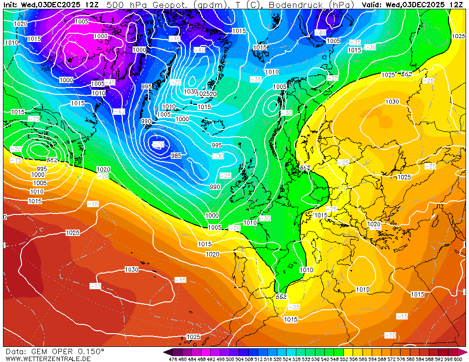 GEM ist das kanadische globale Wettervorhersagemodell und rechnet bis 10 Tage in die Zukunft.